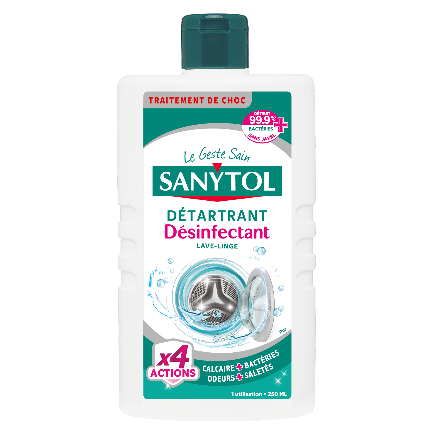 Le détartrant SANYTOL pour lave linge élimine 99.9% des bactéries. Sa formule Tout en Un nettoie, désinfecte, détartre et désodorise votre machine, tout en prolonggeant sa durée de vie.